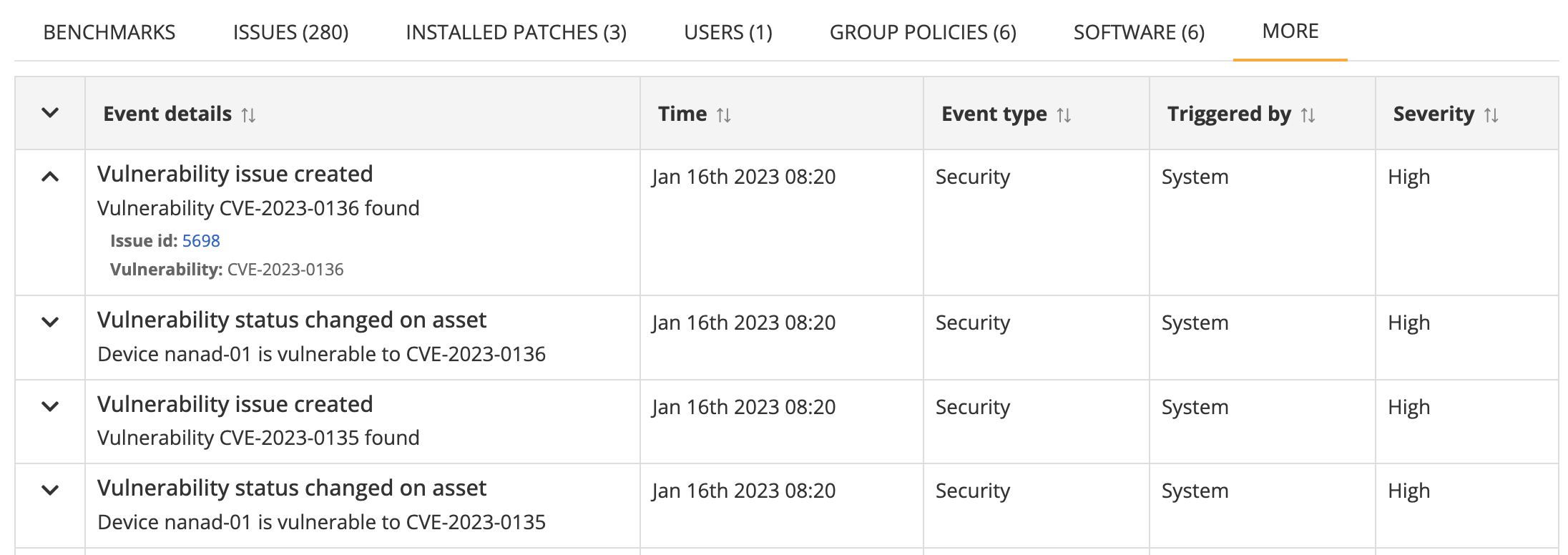 Note that additional information is available by expanding the event with the down arrow on the left.