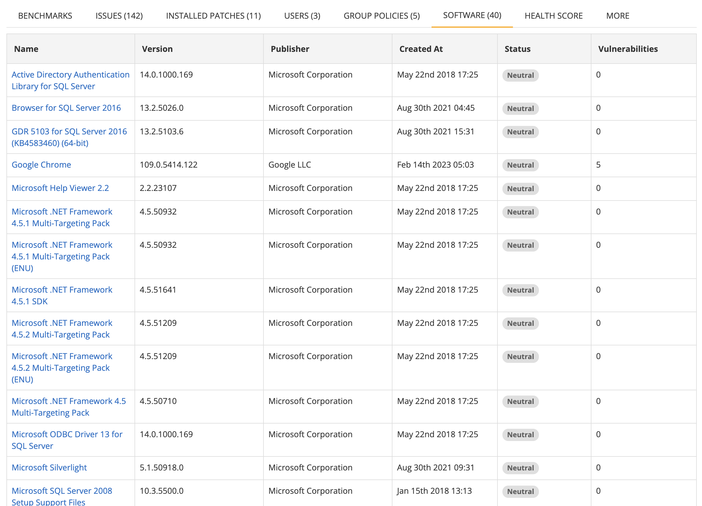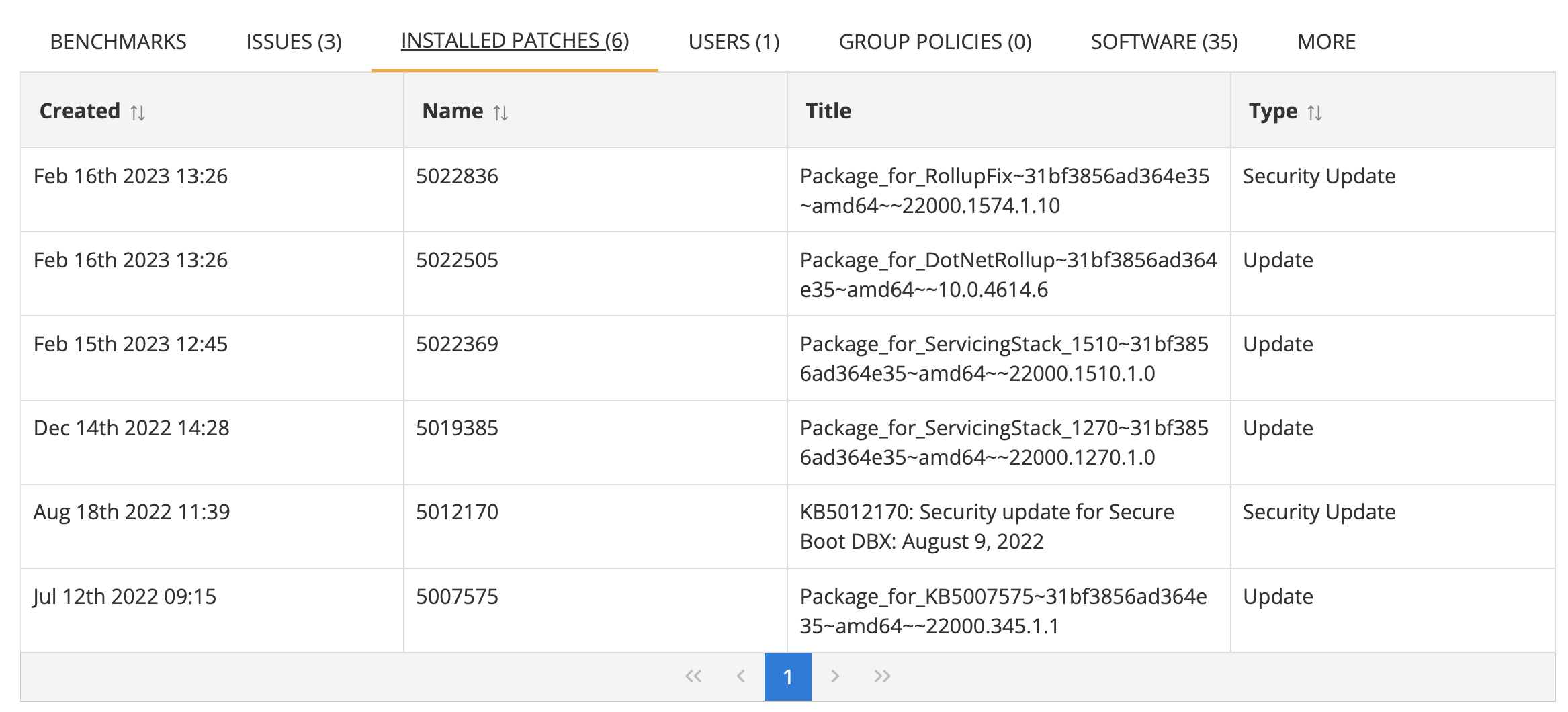 Shows a list of patches that have been installed on the asset. This is only supported on select operating systems where it is applicable.