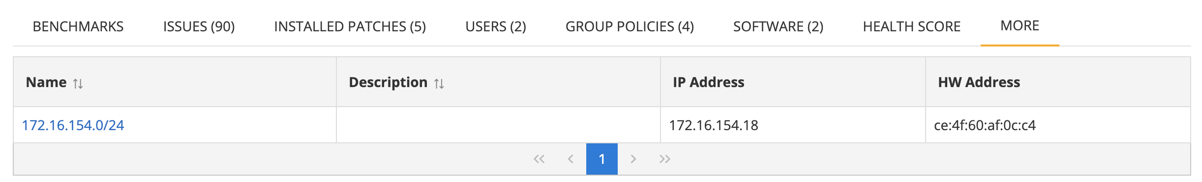 This information shows the network name, description (if provided for the network), IP and hardware (HW) address of the asset on the network.