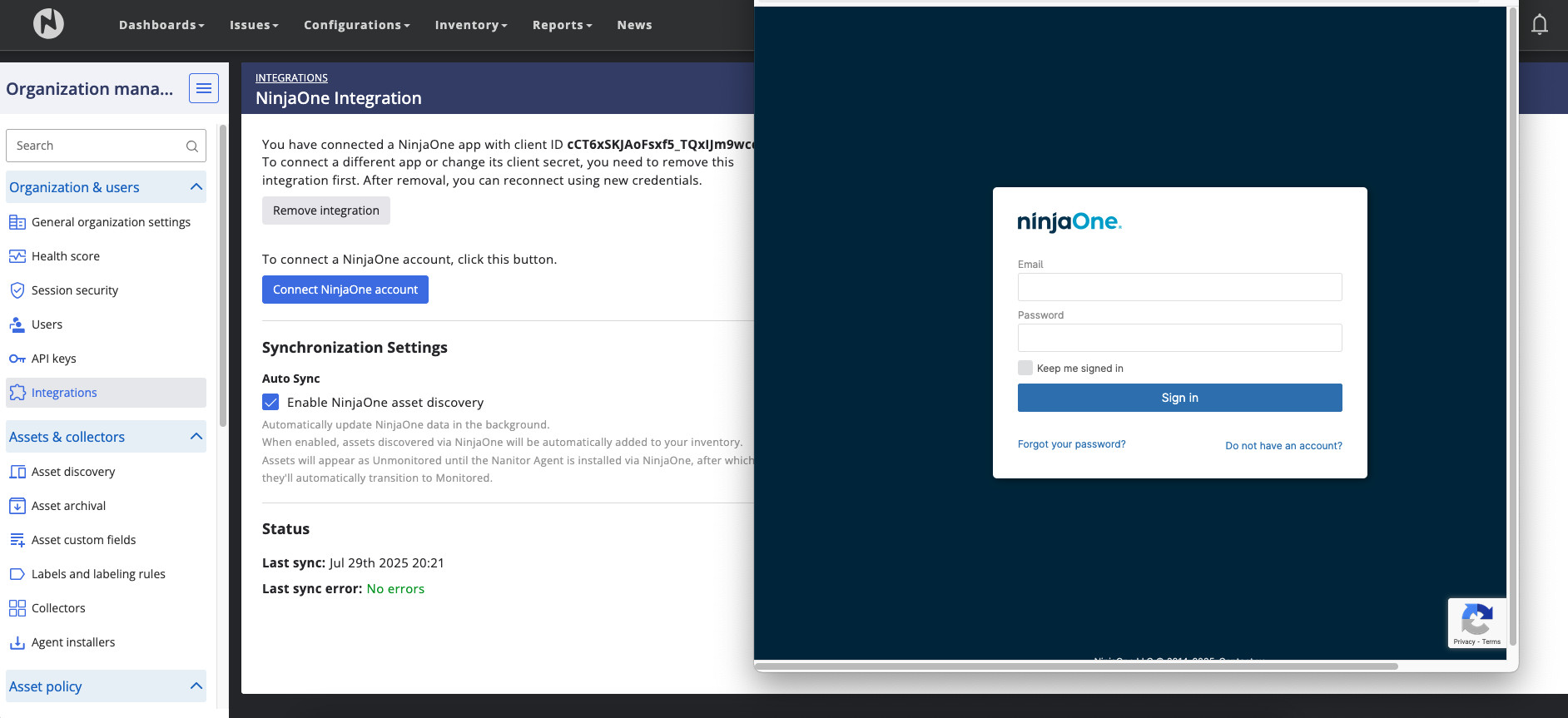 https://[your-nanitor-instance]/organization/[id]/ninjaone/authenticate