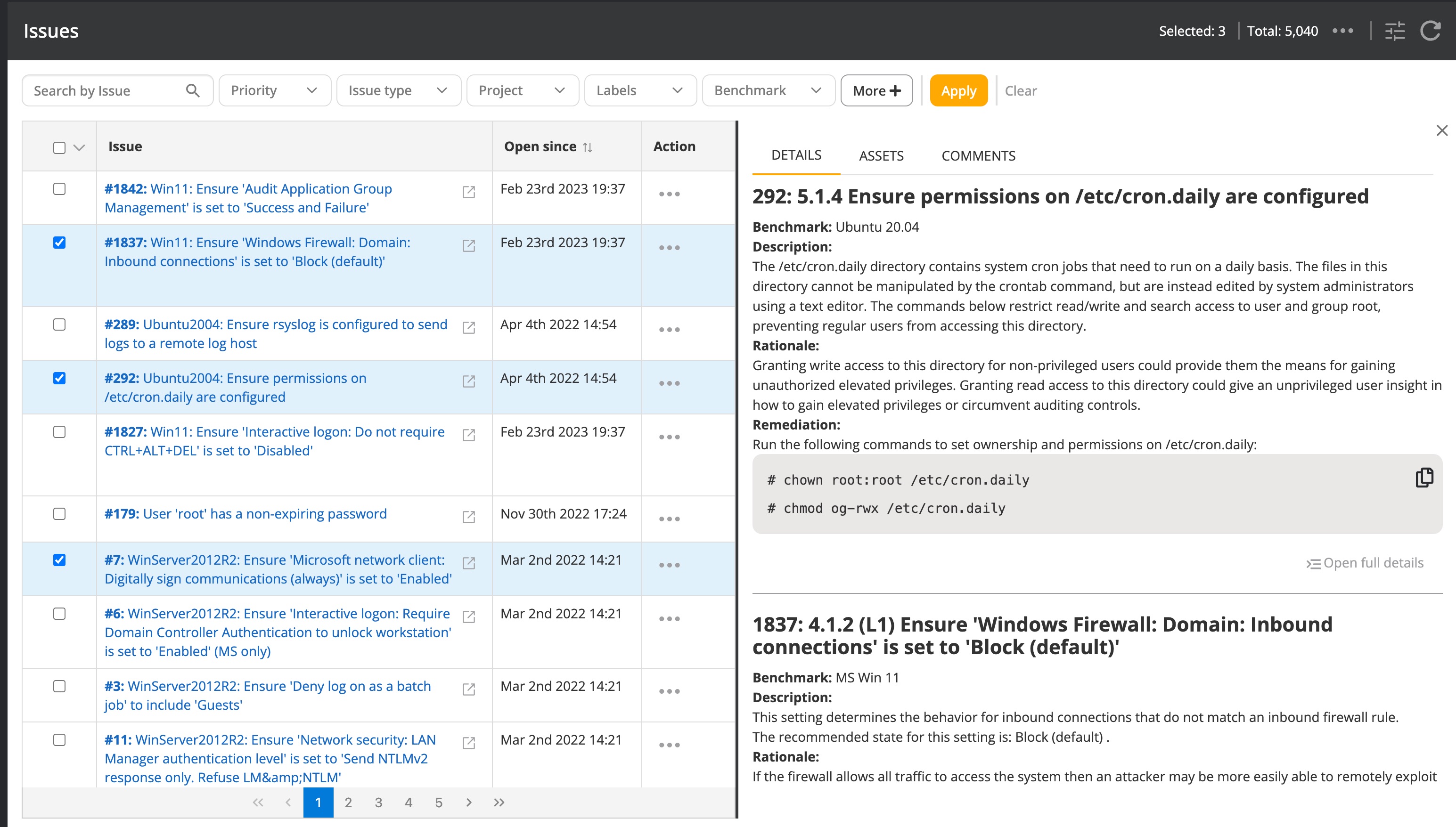 When selecting more than one issue by checking the checkbox in front of the issue(s), the split view on the right will display the short details of all the selected issue(s).