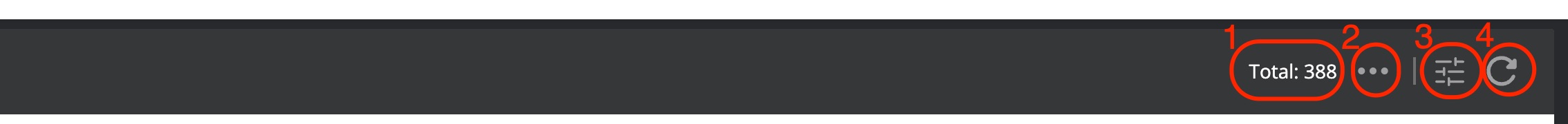 . There you will always see how many records are returned from the selected menu item or from an applied filter (1). Depending on the area where you are located you will get a list of available actions that can be applied to the items returned in the data area (2). The kind and amount of available actions depend on the nature of the subject (eg. issues, assets, etc.). The customize button (3) allows you to adjust the visible columns of the data area. Not all areas allow an adjustment of the column setup. It is mainly headed towards topics where much information is available (assets, issues). The refresh button (4) allows a refresh to bypass the cache and fetch a new set of data from the Nanitor database. - Below the information area and on top of the data area there is the filter area that allows searching for specific items or a set of items from the selected working area. A better explanation of how the filters work can be found below.