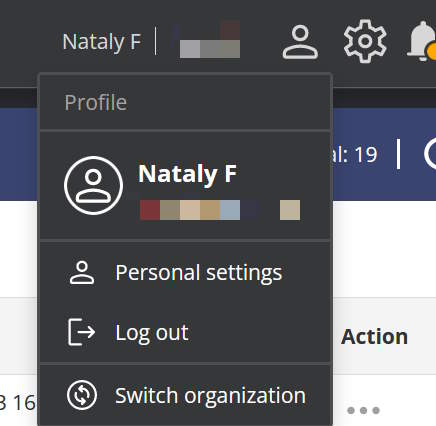 Each Nanitor instance can keep multiple organizations. That allows users to switch between organizations without the need to log out and log into another Nanitor instance. A user with a system administrator role or access to several organizations can switch between organizations after login or at any point during their work with Nanitor. To switch between the organizations, the user needs to click their profile icon at the top right and then click Switch organization.