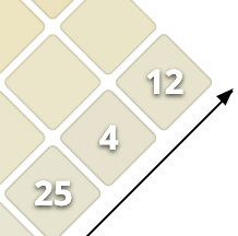The two axes are the dynamic asset priority and the dynamic issue priority, with each square representing a particular combination of asset and issue priority and showing a count of open issues with those priorities. Issue and asset priority ratings each consist of three factors as explained above, and can be fractional, but for the purposes of the diamond, the priority is regarded as the highest of the individual priority categories, rounded to the nearest integer. For instance, if an issue's highest priority rating is 9.8, and the highest priority rating on any of the assets it exists on is 9.4, then that issue will be counted towards the total in the square corresponding to issue priority 10 and asset priority 9 - the square just below and to the right side of the top square in the screenshot below.
