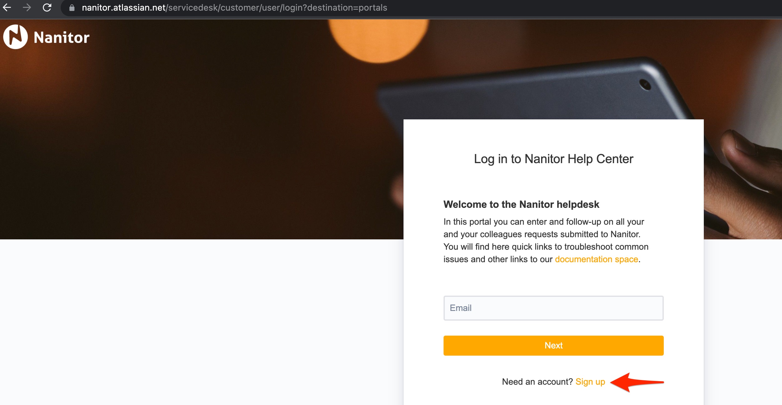 All support requests need to be submitted at our service desk portal or submitted by email to support@nanitor.com. Support requests are handled within Jira Service Desk, the support ticketing tool used by Nanitor. In order to be able to create a support ticket from the service desk portal you will need to have an account at Nanitor. You can create one from the logon screen.