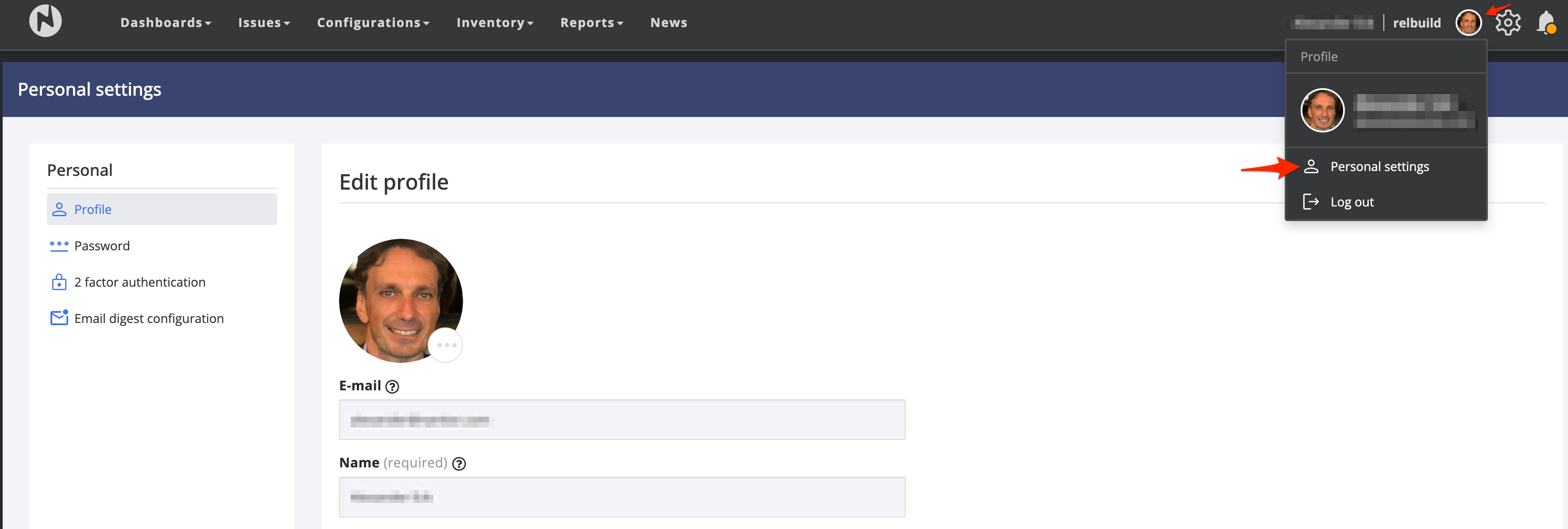 A user account serves as your identity when accessing Nanitor. It consists of your email, password, and any relevant user information. You can access your user account and profile settings by clicking on your profile image located in the upper right corner, as illustrated here: