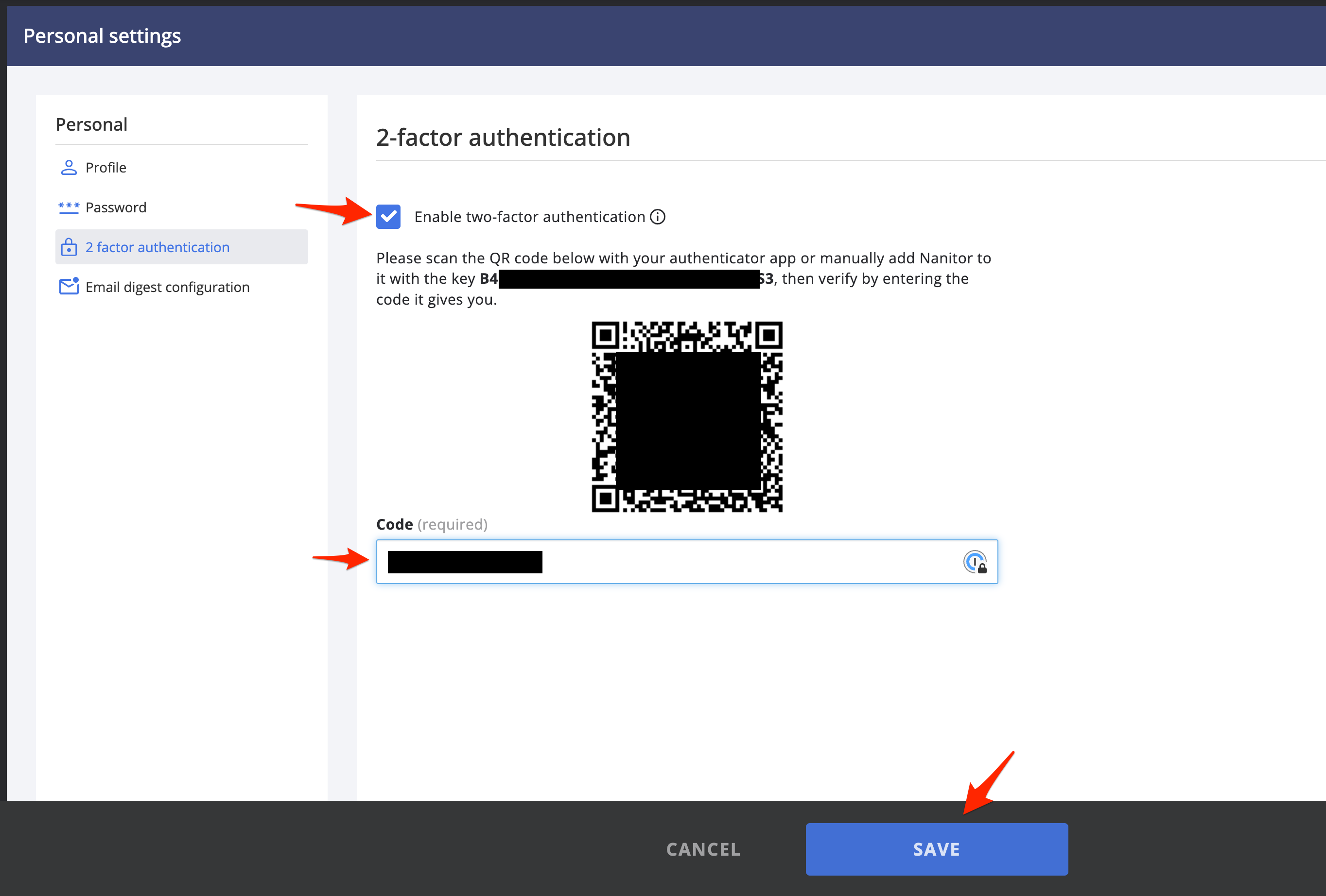 As Nanitor safeguards crucial information about your organization's assets and security, we highly recommend enabling two-factor authentication to bolster your account's protection.