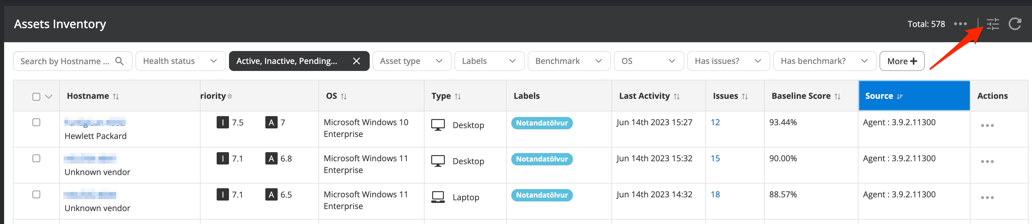 The complete list of assets can be viewed by navigating Inventory → Assets