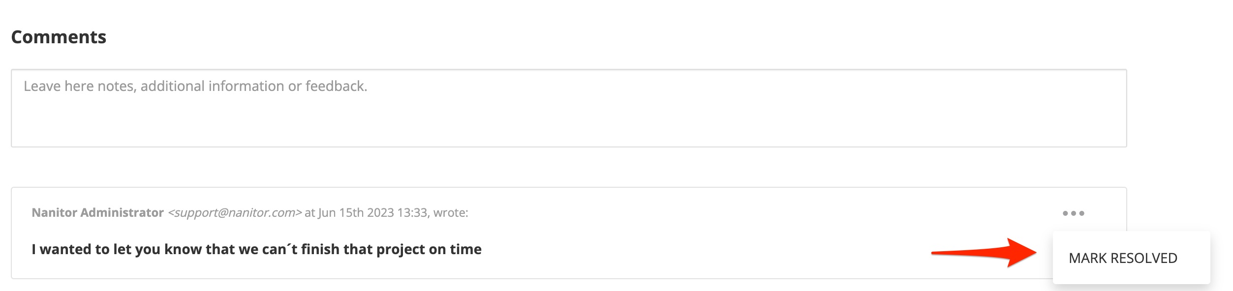 - Project comments help to communicate between teams and team members which makes decision and communication processes transparent and increases efficiency. Comments can be added and resolved if they involve a decision or a task to perform.