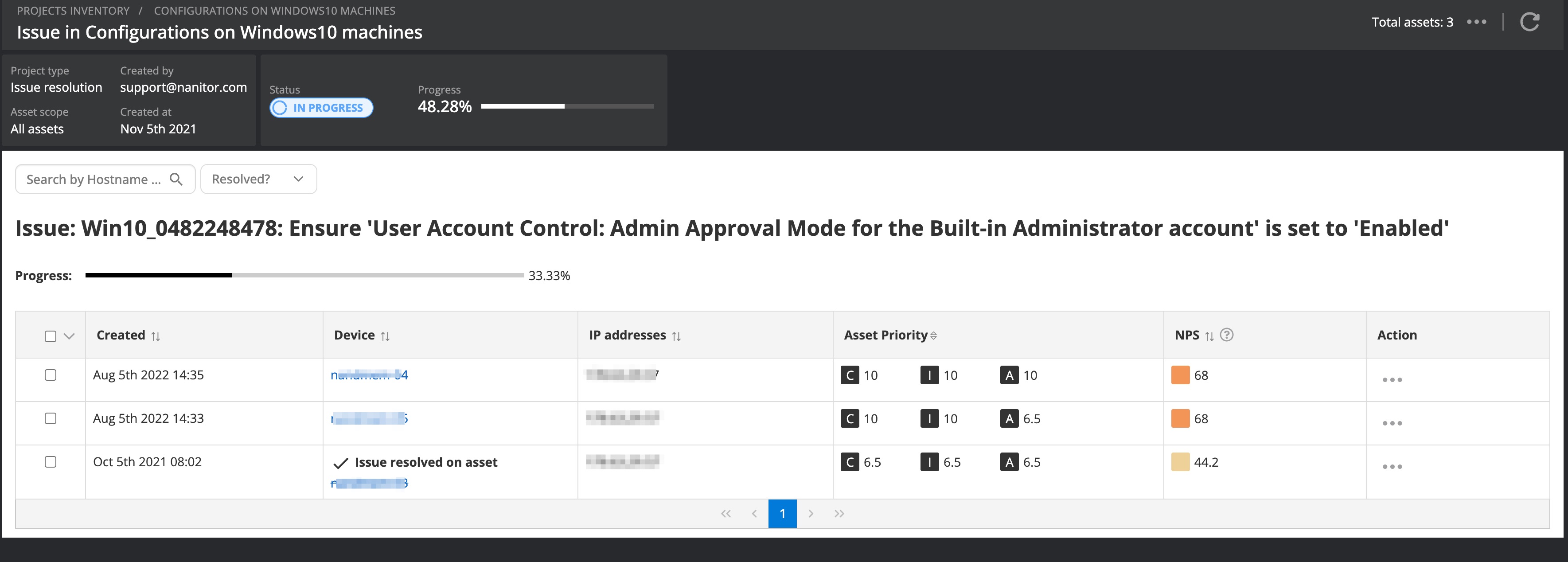 Nanitor detects thousands of issues and therefore it is essential to focus on issues that matter the most to your organization. The priority engine included in the Nanitor software helps you to identify the most important issues that you need to take care of. There are many parameters that matter and some are more relevant to the field you are specifically working on. You might need to focus on hardening the security configuration of your operating systems, patch all relevant software titles or remove granted user permissions. Refer to our quick start guide to give you an idea of where you should begin the remediation journey. But the entire house of cards is based on a holistic view of your asset fleet and therefore it is the first step that everything gets captured in Nanitor and all your assets are prioritized accordingly.
